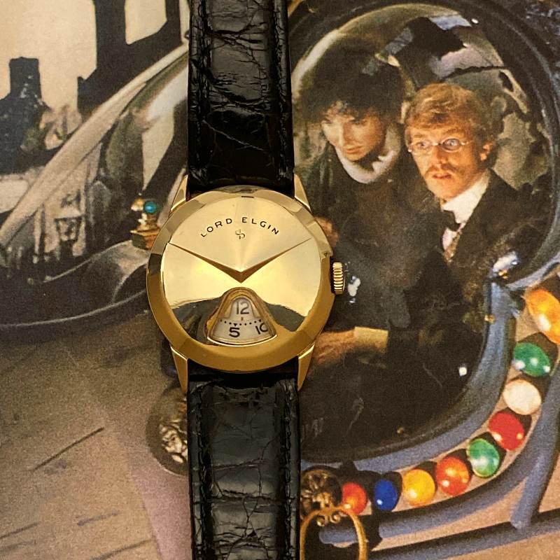 The year 1957 was a landmark year for design. This is when everything that came off the designer's drawing board was unusual and it seemed like every other product that came along was futuristic in design. Such was the Elgin "Direct Reading" Jump Hour. These were made in three different cases, although the 21 jewel Cal. 719 movement was common to them all.
